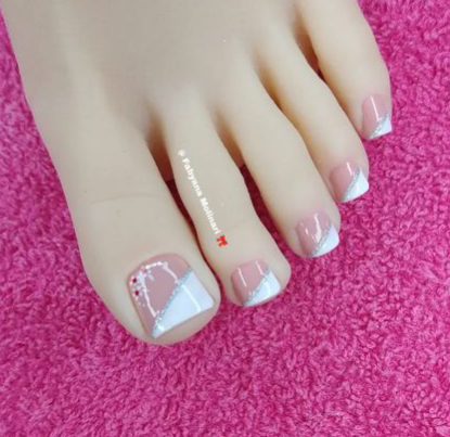 A primeira delas, é a Tecnica Inglesinha com fitilhos nos pés. Muitos conhecem a Francesinha, e nao conhecem esa tecnia que se trata de um traço na diagonal da unha, sendo em branco ou cores que voce preferir. O diferencial mesmo, é o traço e as cores que são das mais variadas.