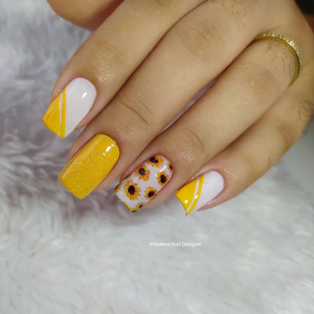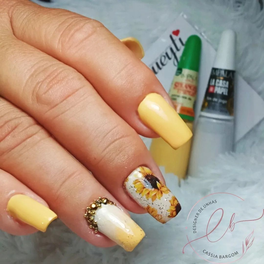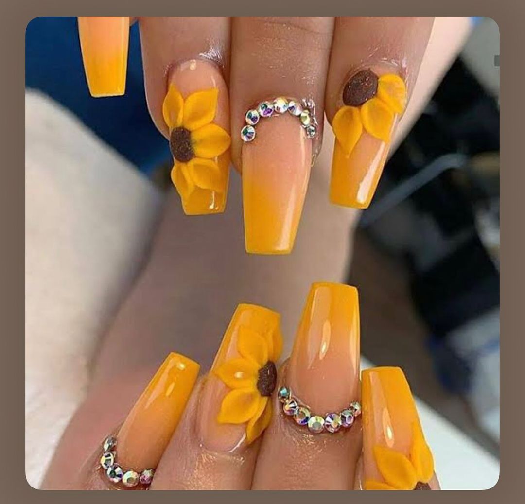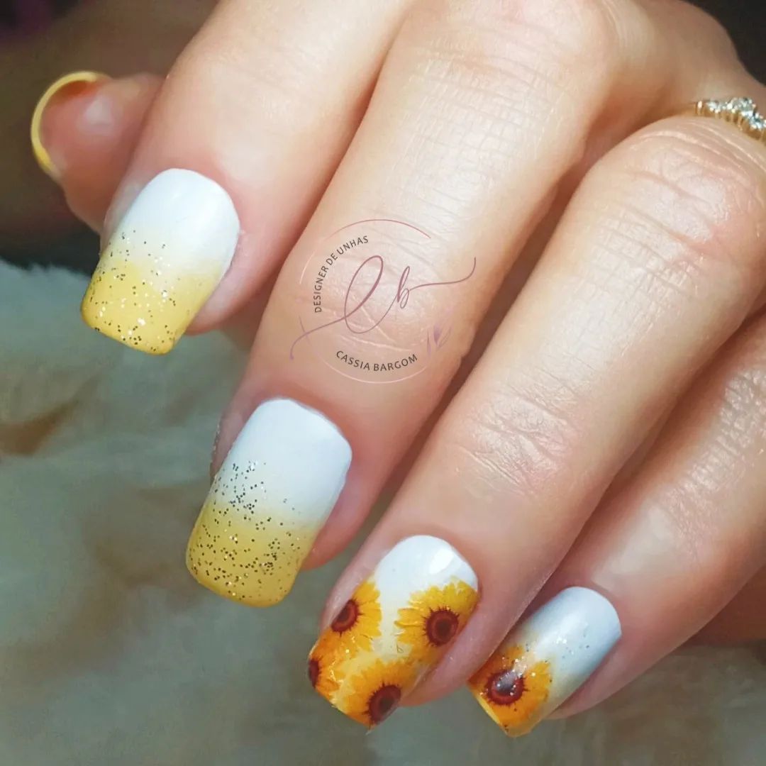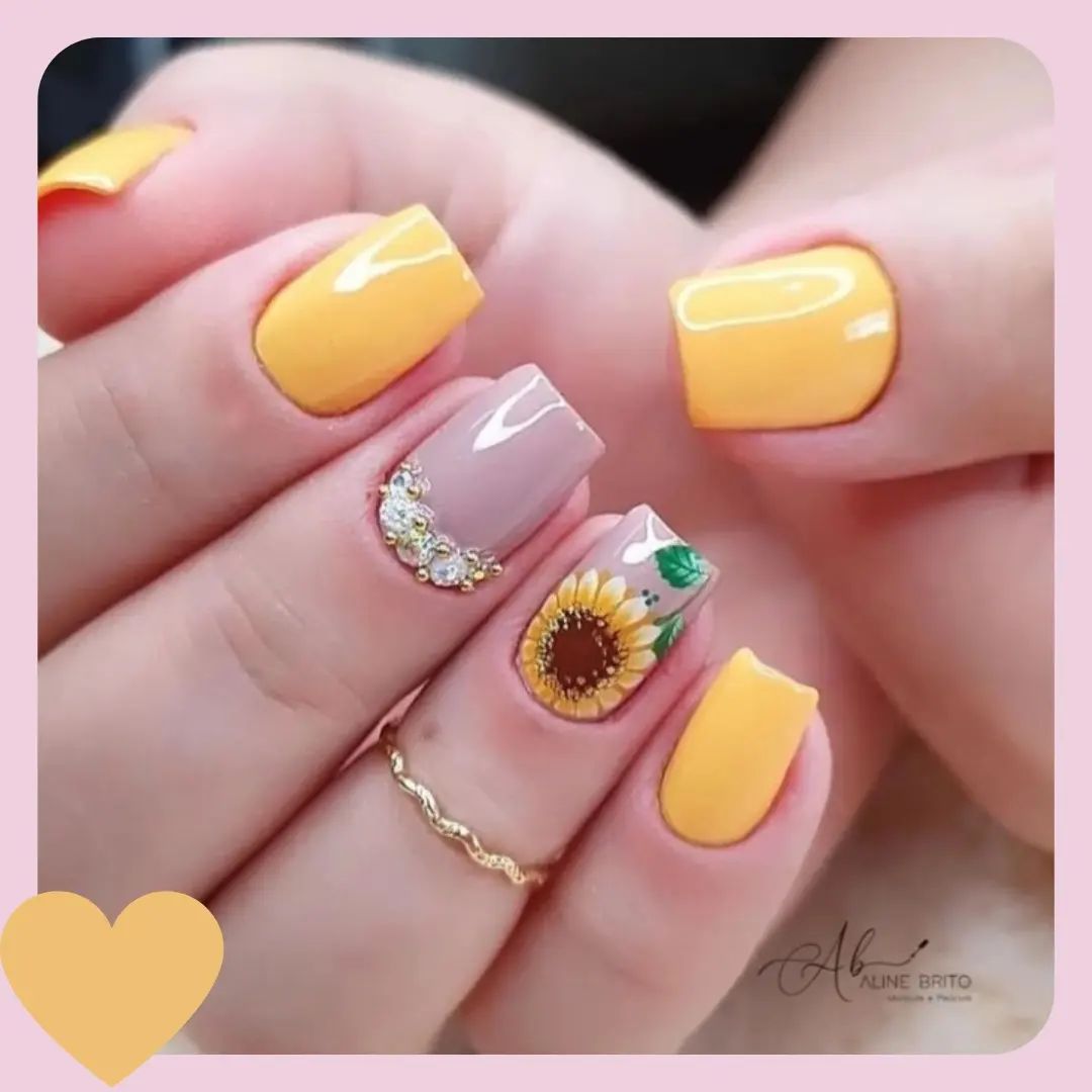 As unhas decoradas com girassol são alegres e vibrantes. O amarelo, a cor mais usada para decoração, mantém as unhas vibrantes e atrai a atenção de todos.