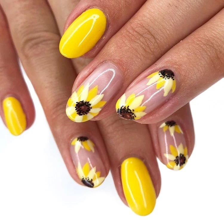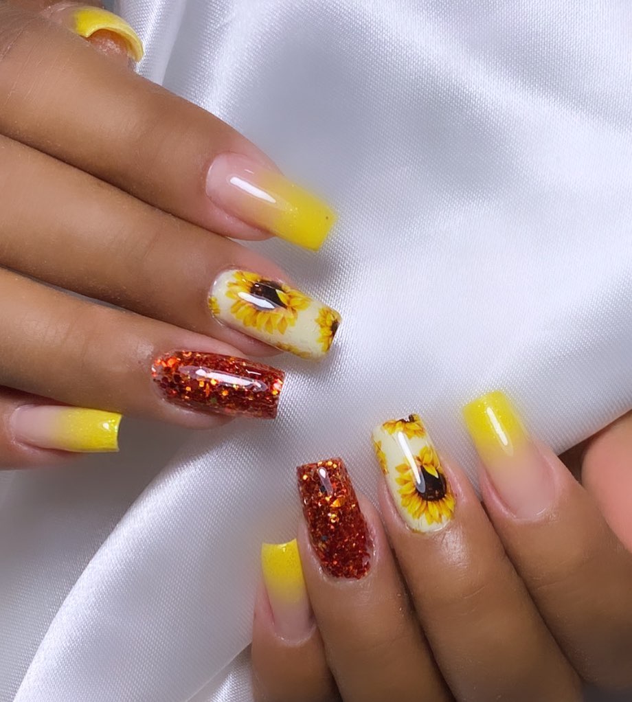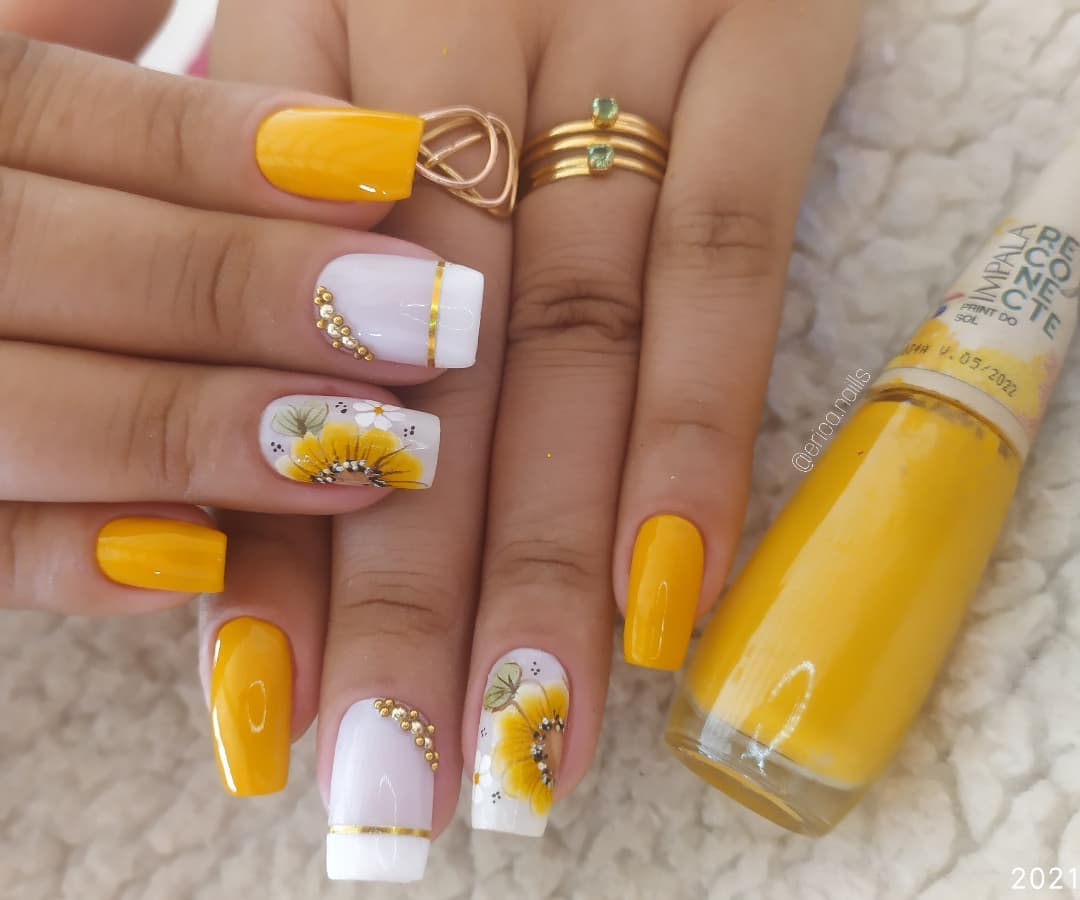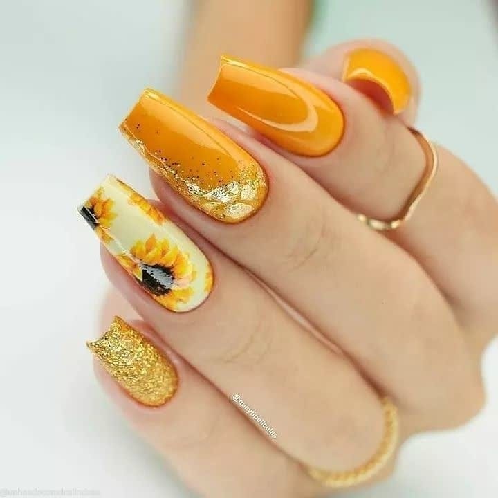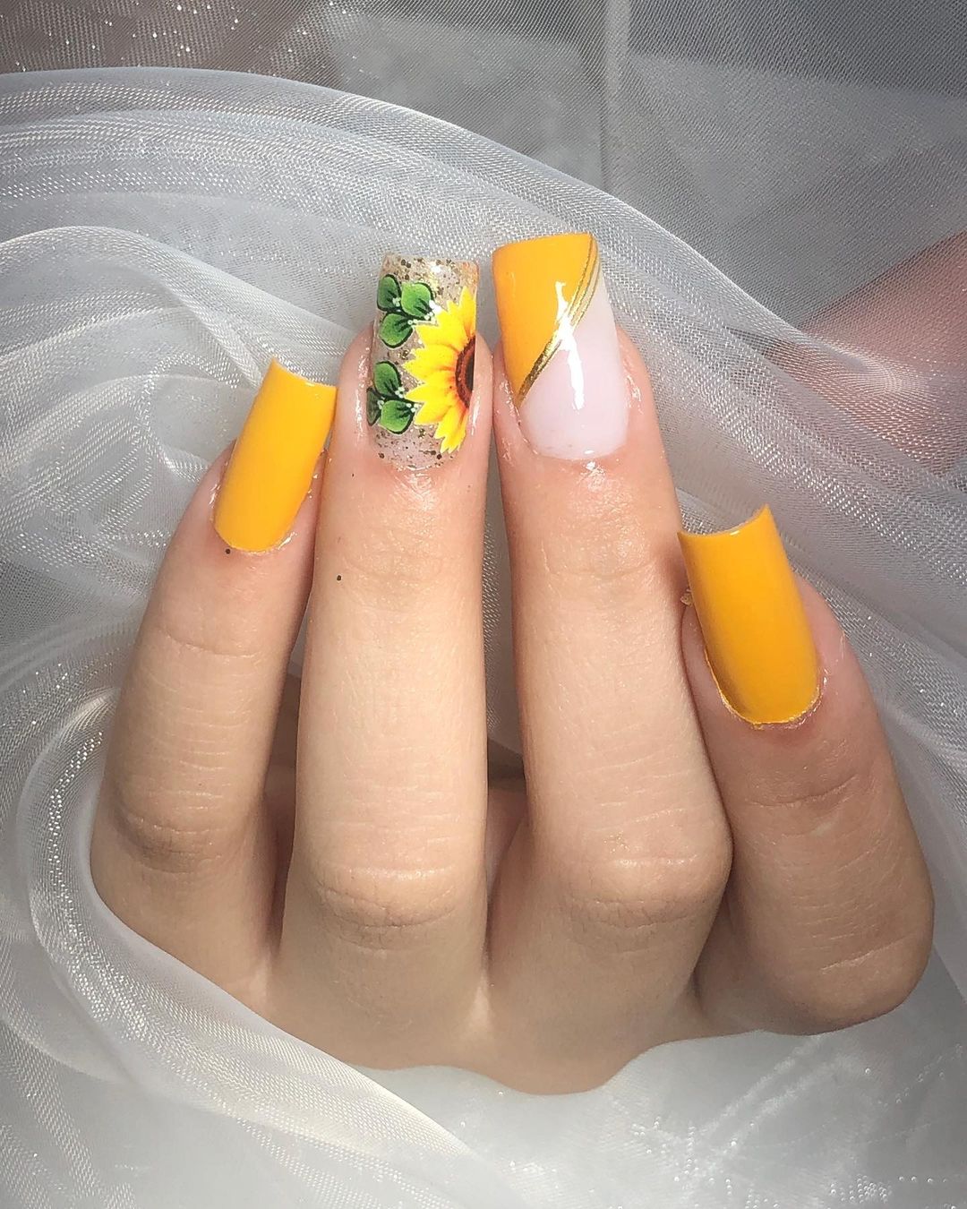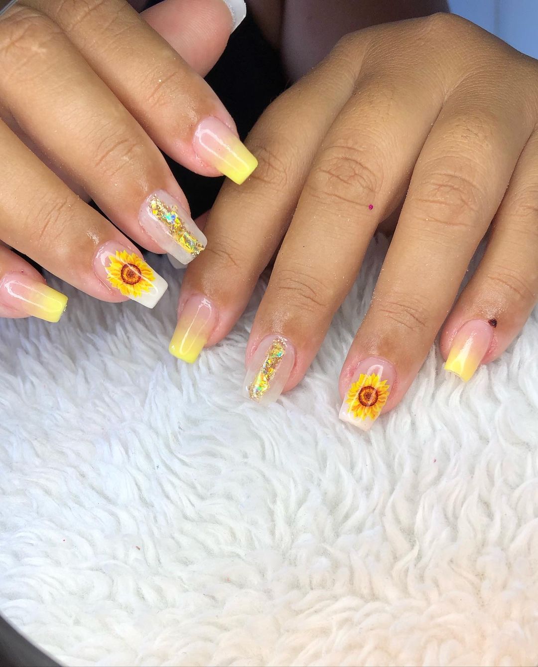 As unhas decoradas com girassol são alegres e vibrantes. O amarelo, a cor mais usada para decoração, mantém as unhas vibrantes e atrai a atenção de todos.