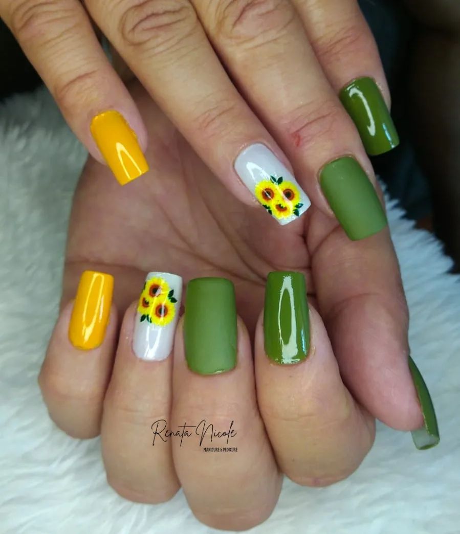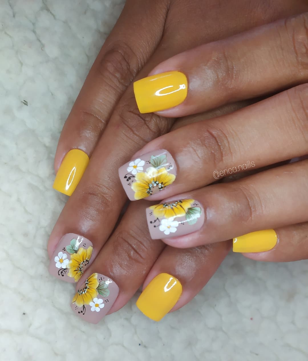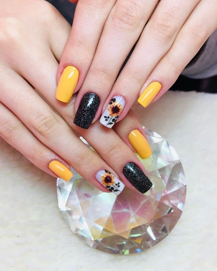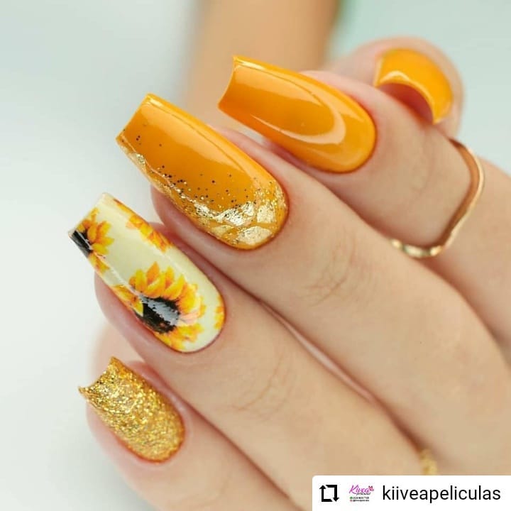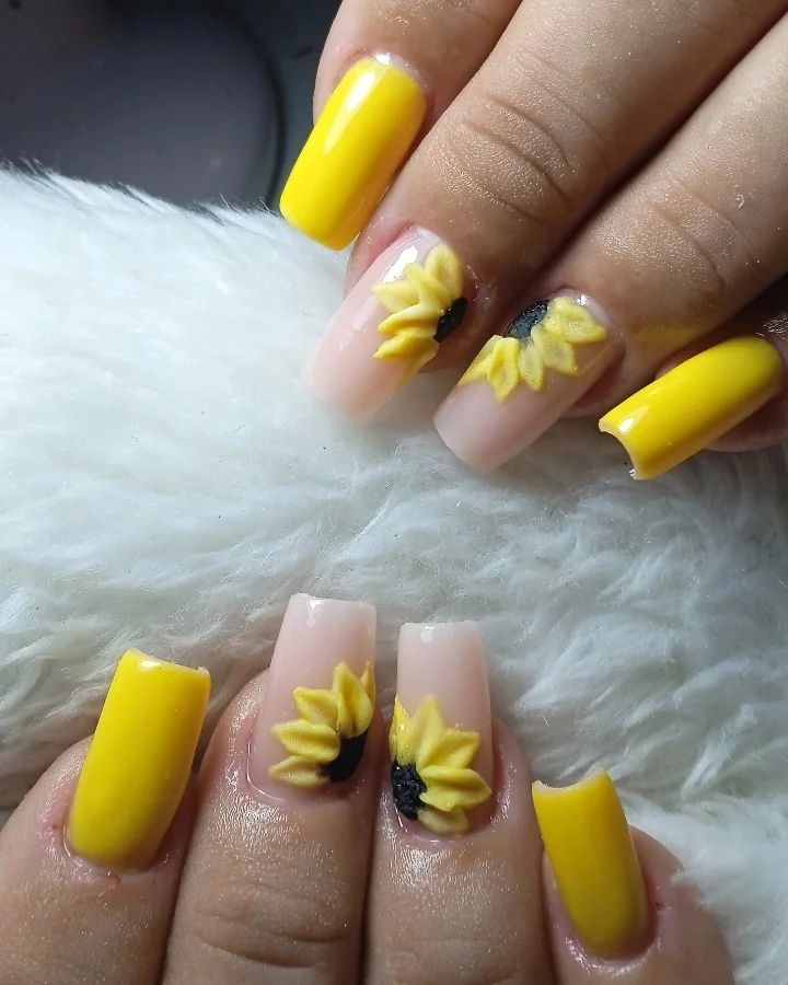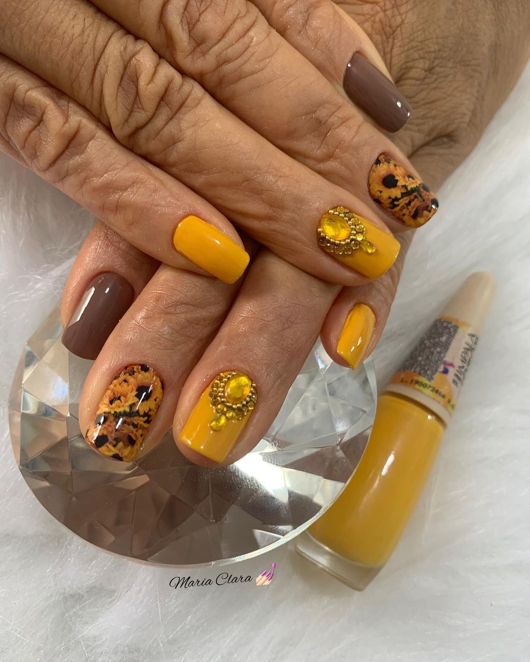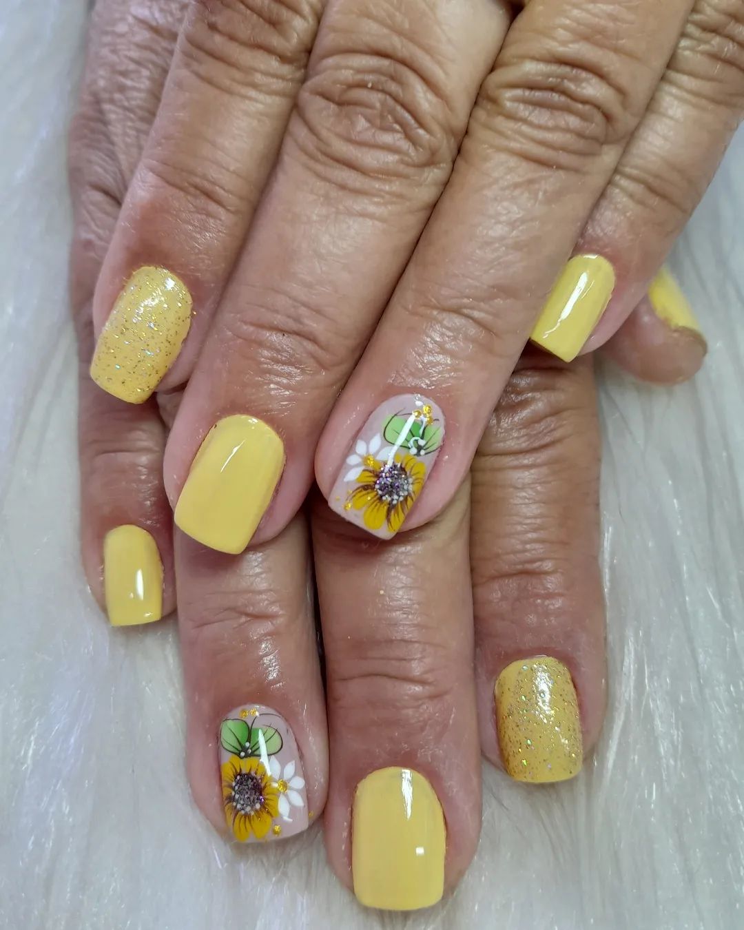 As unhas decoradas com girassol são alegres e vibrantes. O amarelo, a cor mais usada para decoração, mantém as unhas vibrantes e atrai a atenção de todos.