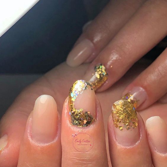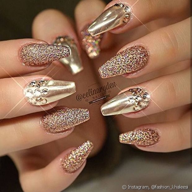 Unhas com detalhes dourados. Você precisa ver