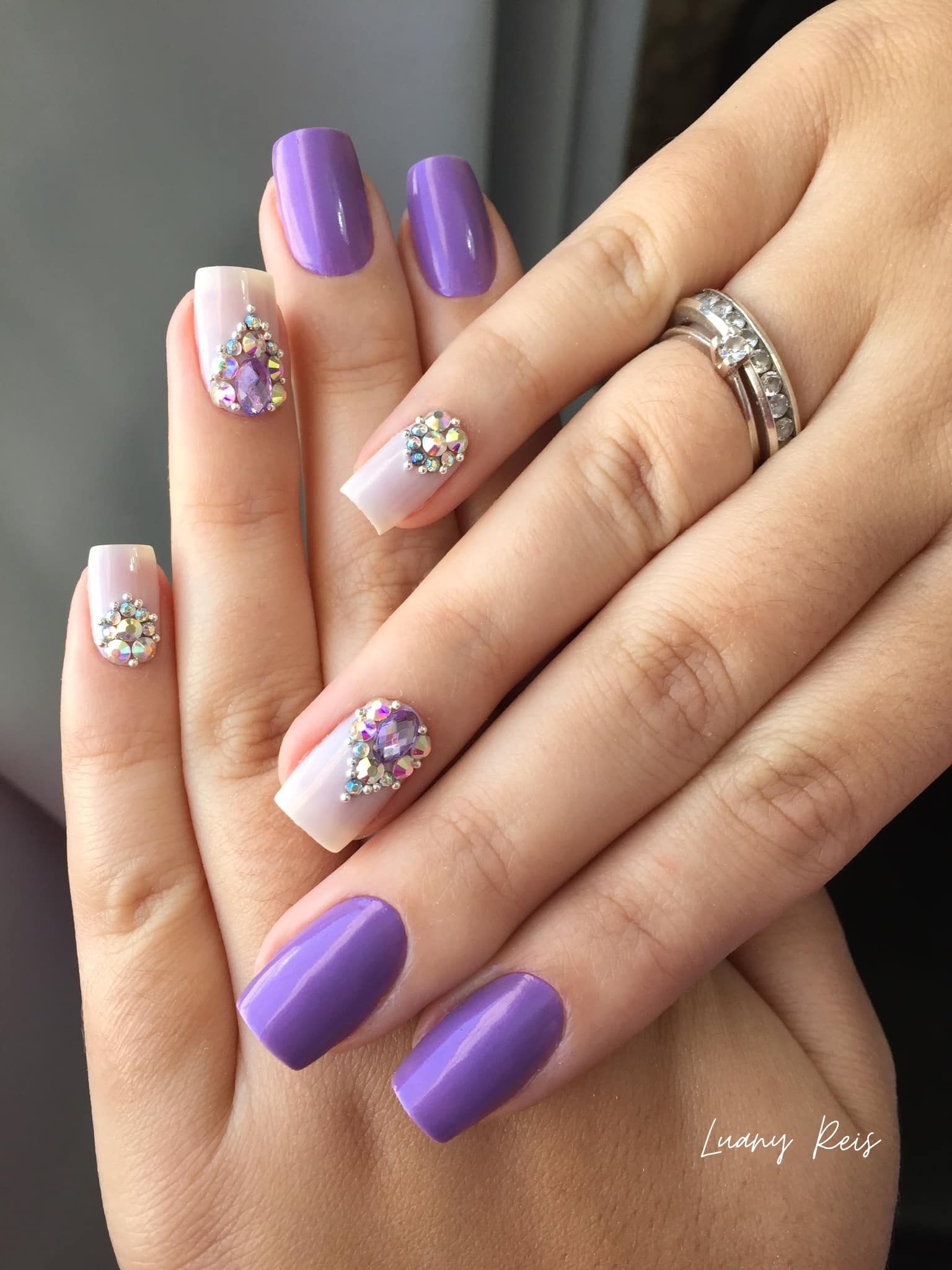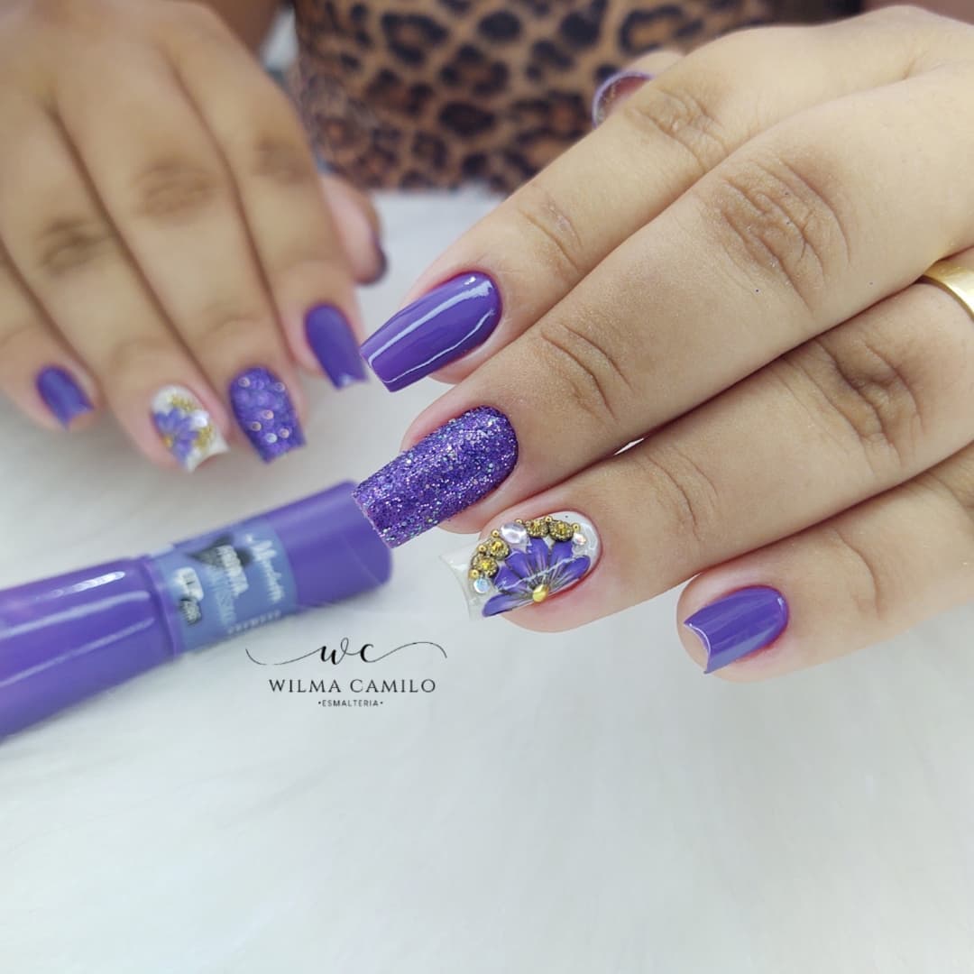 Roxo representa o mistério, expressa um senso de individualidade e individualidade, combinado com intuição e contato com o todo espiritual. Local recomendado para meditação. É tão versátil que dá para completar uma cartela de cores com uma unha multicolorida!